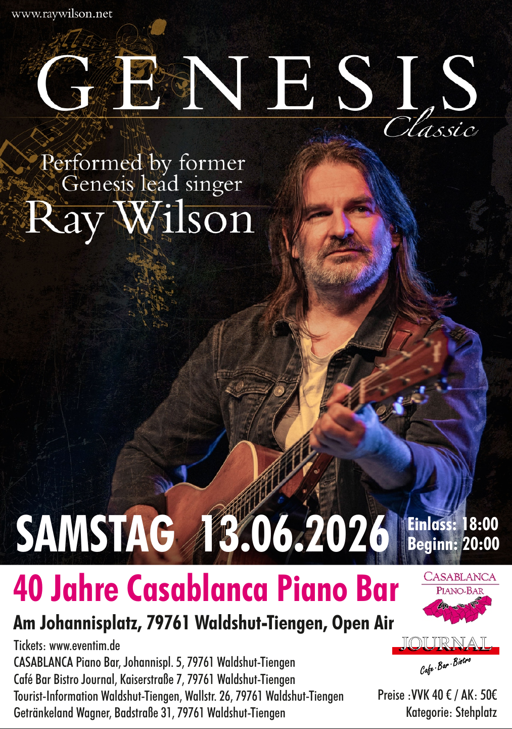 Apropos Casablanca: Am 13. Juni feiern wir 40 Jahre Casablanca Piano Bar! Zu diesem Anlass veranstalten wir auf dem Johannisplatz ein Konzert der Sonderklasse. Zu Gast ist der Weltstar RAY WILSON. Der ehemalige Frontman der Band GENESIS tritt im Rahmen seiner Genesis Classic Tour bei uns auf. Dieses Highlight des Jahres dürft ihr auf gar keinen Fall verpassen. SAVE THE DATE...!